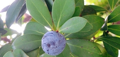 倒卵葉楠就是這樣的植物,小而厚實葉片是它在高溫、強風、乾旱環境存活的利器。種植在本館植物園季風雨林區裡的倒卵葉楠,花朵在大約在原生地每年落山風前初起的10月左右開放,小而密集的花朵集生枝稍,宛如映照在由濃綠葉片構築而成的綠海中繁星,自有一種小巧玲瓏的細微之美。授粉後的花朵在故鄉被落山風吹拂期間靜默地發育圓熟,隔年3、4月間成熟。接著在綿綿春雨中,種子落地發芽,逐漸茁壯成小樹。