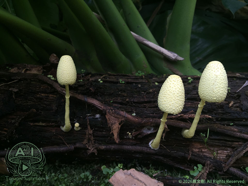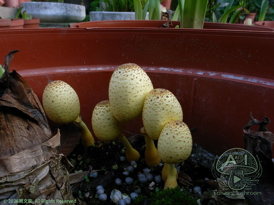 看著它們的成長,就像在觀察一場優雅的變身秀:最初,它們像是一顆顆掉落在泥土裡的檸檬黃色小蛋,害羞地蜷縮著;隨著時間推移,菌蓋會逐漸伸展,從長卵形轉變為精緻的圓錐狀或鐘形,表面覆蓋著一層細緻如粉末般的碎鱗,彷彿灑滿了檸檬糖霜。這群鮮豔的小精靈在短暫的生命裡,以最明亮的姿態在你的花盆中「起舞」,然後在數天內迅速消逝,留下神秘的黃色印記。