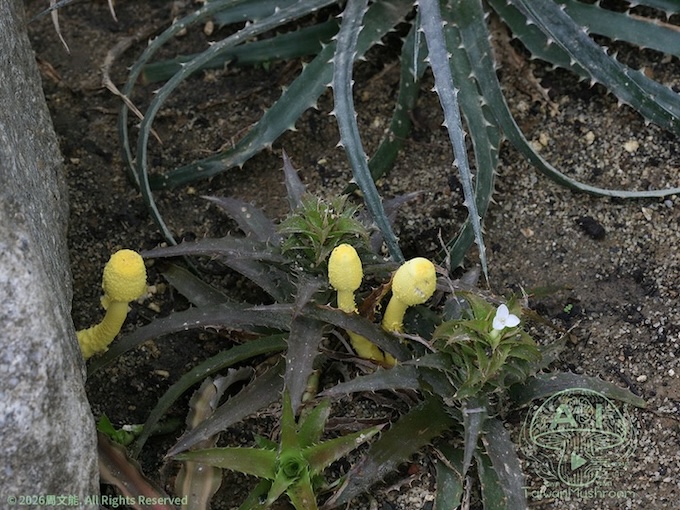 在某個溫暖潮濕的午後,你剛為客廳那盆心愛的觀葉植物澆完水,隔天早晨,你可能會驚訝地發現盆土中冒出了幾個明亮奪目的黃色小生命。這種被稱為「純黃白鬼傘」的真菌,是人類生活中最常見的「室內房客」,它們常隨著熱帶觀賞植物的土壤,像無聲的偷渡客般跨越國境,入駐全球各地的溫室與花盆。雖然它們在分類學上屬於蘑菇科,但比起森林,它們似乎更鍾情於與人類共享室內的恆溫環境。