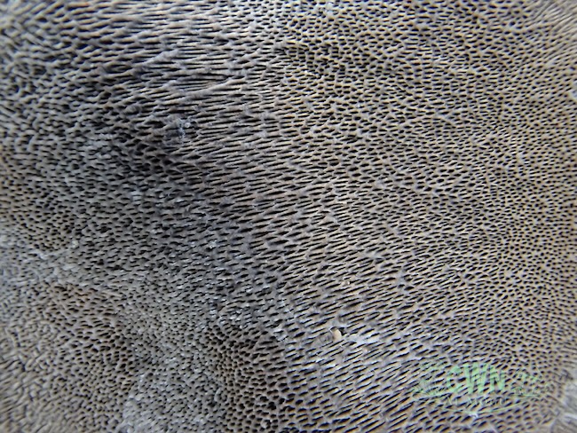 這傢伙像是一位極度執著的「土地承租者」,一旦看中了某棵樹,便會像穿上一雙厚實的「棕色襪子」般,緊緊包裹住樹木的根頸部。它不會害羞地躲藏,而是隨著時間變身,從最初幼嫩的黃褐色菌絲,轉化為堅硬如石、深褐近黑的厚重甲殼。即使宿主不幸枯死倒下,它依然會化身為死木中的幽靈,在那裡潛伏十年以上,等待下一棵倒楣的樹木根系觸碰到它,再次開啟下一輪的「殭屍化」循環。