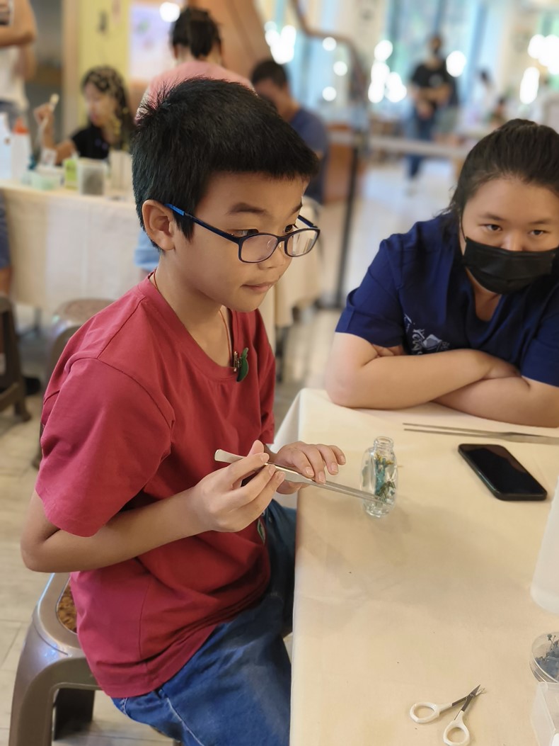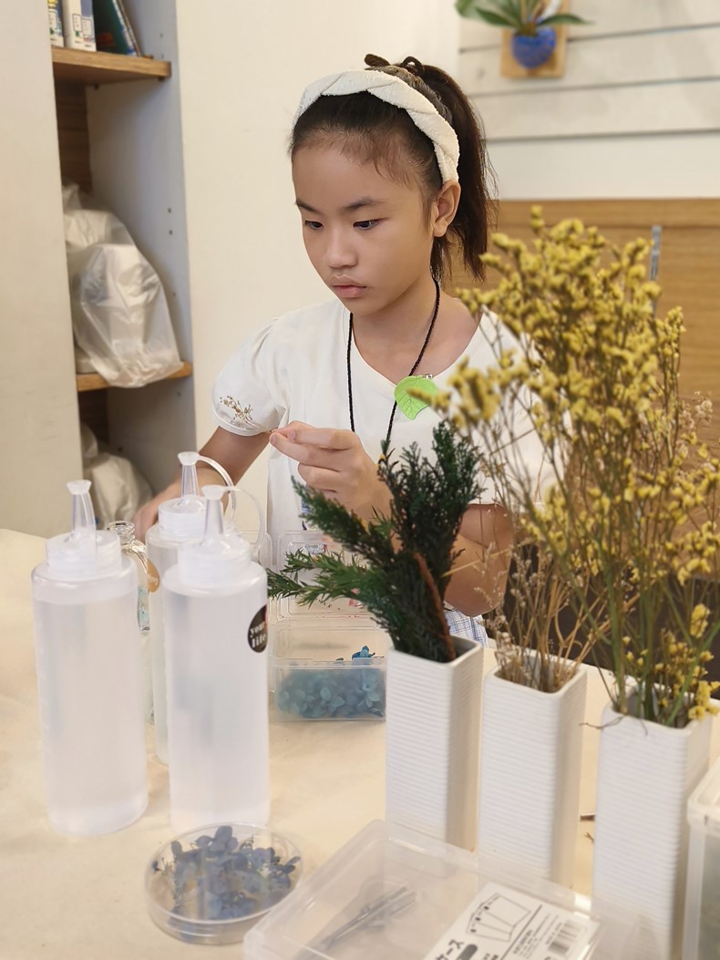 本次活動將帶領觀眾認識植物的根莖葉花果等各部位構造,以及介紹植物標本的類型並示範乾燥過程,藉此培養學員製作植物標本能力,進而利用家中花草製成美麗乾燥花葉布置居家生活。而浮游花瓶DIY將引導學員如何將乾燥花葉放入瓶中,透過礦物油的包覆封存在玻璃瓶內,體驗「科學」與「美學」結合的瓶中花。
