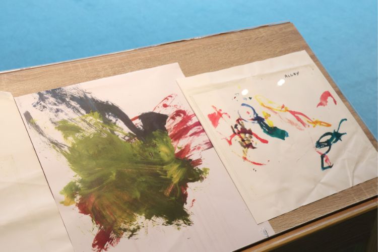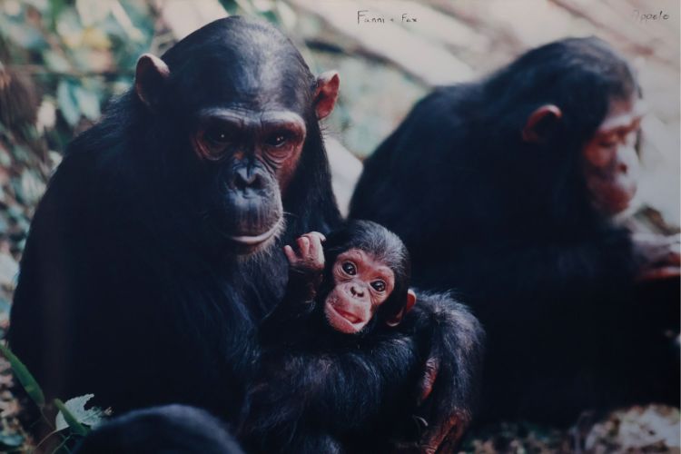 展場亦展示30年前珍古德親自帶來臺灣的黑猩猩工具模型,上面仍可見她當年親筆書寫的黑猩猩名字:FANNI(母)與FAX(嬰)、Appolo(子)、SANDI(母)等,象徵她與研究對象之間深厚的情感連結。