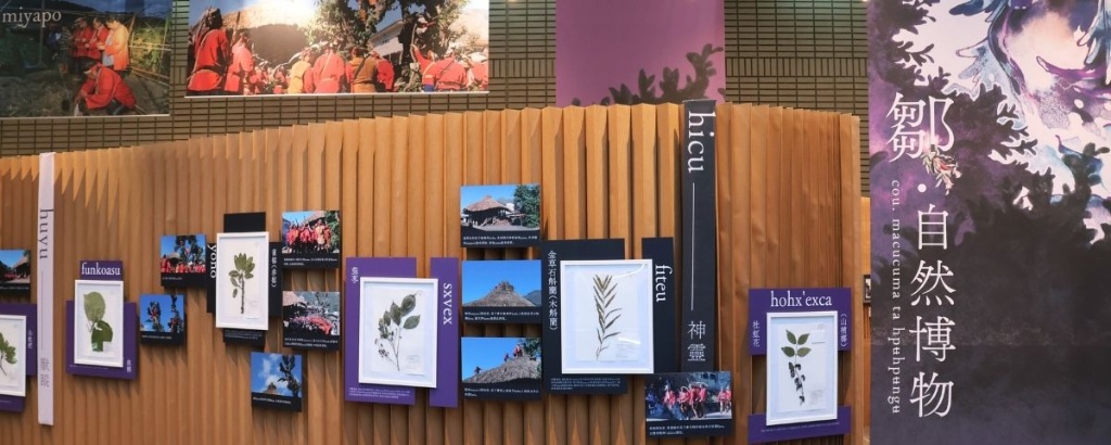本次特別展出30多件臘葉標本,包括楓香、九芎、金草蘭、雀榕、茄苳、山黃梔、月桃等植物,展示其在建築、醫療、染色、獵蹤等面向的實用價值與象徵意義。像是「楓香」被視為鄒族祖先的誕生之所;「金草蘭」象徵戰神,部落會所屋頂需種植此植物,參戰勇士也會佩戴以求庇佑;「雀榕」則為戰神下凡的通道,被視為神樹;「老茄冬」樹林被認為是眾神停留之處,族人不敢隨意打擾;「栓皮櫟」因其幽暗森林形象,則被認為是惡靈的棲所,透過這些植物故事,觀眾得以理解動植物如何成為連結人、土地與神祇世界的橋樑。