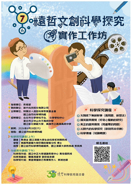 國立自然科學博物館長期致力於科學普及與教育推廣,而遠哲科學教育基金會自 2020 年起舉辦「文創科學探究競賽」,今年本館與遠哲科學教育基金會攜手,辦理「遠哲文創科學探究競賽」中區實作工作坊。我們深信,科學素養的起點就在於「動手做」的探究精神。