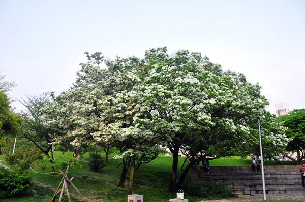 The Chinese fringetree are found in China, Korea, Japan and Taiwan. In Taiwan, during the Japanese colonial period, there were records in Xianjiaoshi in Hsinchu and Jiaobanshan in Taoyuan, but they were not found for a long time, so they were once thought to be extinct in the wild in Taiwan, until new distributions were found in the Linkou Terrace and Nankan area in Taoyuan, where they were found to be sparsely scattered, remaining on the slopes of terraces or on steep cliffs. Nowadays, the Chinese fringetrees are planted in many parks and private gardens in Taiwan, mainly in the northern metropolitan area, and there are famous trees on campus of the National Taiwan University and the 228 Peace Memorial Park. In the central region, large numbers of the Chinese fringetrees began to be planted around the year 2000. The museum has the largest number of the Chinese fringetrees in Taichung and the longest history of planting, with the tallest and most luxuriant plants, which attract many tourists to visit and enjoy the flowers in blossom every spring.