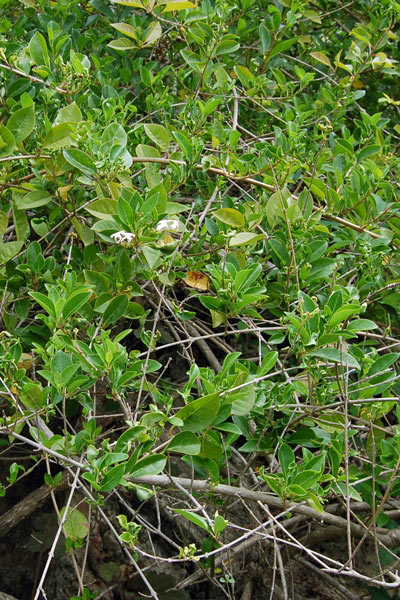 In addition to its adaptability, the seaside clerodendrum also has a certain ornamental value. Its ovate-round leaves are thick and glossy, appearing a lustrous green in sunlight. The flowers of the seaside clerodendrum have a unique shape, with five pure white petals that sometimes have a faint reddish tint. At the base, the petals fuse to form a long cylinder, which then unfurls and curls outward at the tip. Five long stamens extend from the center of the flower. Although the flowers are not large, they are truly unforgettable. The spherical berries that form after flowering turn blackish-brown when ripe and also attract some birds to feed on them.