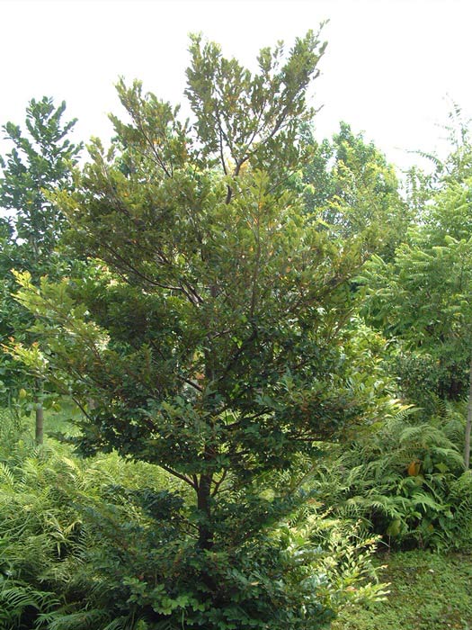 At the National Museum of Natural Science, flowers acemes distylium trees are planted in the Orchid Island Area of the Botanical Garden. A prominent specimen can be found beside the trail leading from the Research and Education Center’s side entrance to the Orchid Island Area, where its lush green foliage adds to the natural charm of the landscape.