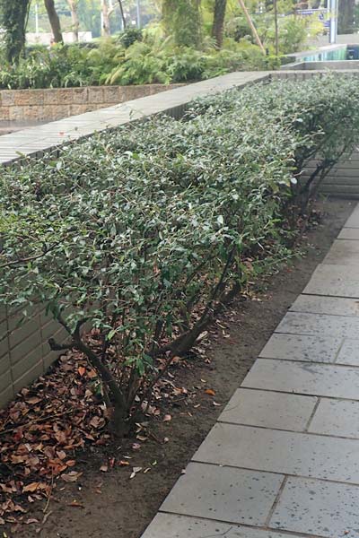 In early literature the Oldham elaeagnus was classified as a species endemic to Taiwan, but in fact, it is also distributed in Fujian and Guangdong provinces in southeastern China. It is a common coastal and riverbank shrub in Taiwan, possessing high drought tolerance, salt tolerance, and wind resistance. It thrives in both gravelly and sandy soils and has been selected repeatedly as a tree species for landscaping in poor soil conditions. In the museum, it is planted on the circular hill in the Central Lowland Area of the Botanical Garden, near the side gate leading to the administrative center, and is used as a hedge.