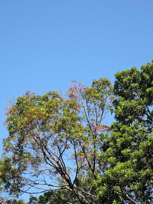 The crown of the common elaeocarpus is cylindrical in shape, with dense branches and leaves, providing excellent shade. The alternate leaves appear purplish-red when new leaves first emerge, gradually turning emerald green over time. Before falling, the older leaves turn a vibrant crimson red, creating a striking contrast of red and green. This rich color variation throughout the seasons makes the tree a popular choice for parks, green spaces, and roadside plantings. Its beautiful shape and different appearances throughout the seasons make it a popular native tree species, so it is widely used as an ornamental tree and street tree.