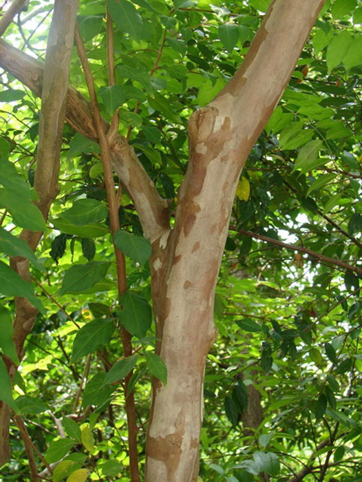 Compared to other plants, the subcostate crape myrtle is relatively easy to identify. Its bark peels off periodically, leaving the surface smooth and sleek—so smooth that even monkeys have difficulty climbing it. For this reason, it is also known by local nicknames such as “monkey-slippery tree” and “monkey-doesn’t-climb.” In early Taiwan history, particularly during the founding of Yilan City, subcostate crape myrtles were planted around the city as a natural defense using their smooth bark to prevent enemies from easily climbing the walls.