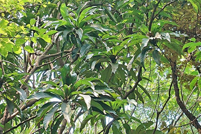 The giant-leaved marking-nut is an evergreen tree. Its Chinese name comes from the fact that it is commonly found in Taitung, but it is not unique to Taitung. It is also found in Hualien, the coast of Taitung, to Orchid Island, Green Island, and the Hengchun Peninsula, and even in the Philippines. In the Botanical Garden, it is planted along the trails of the Orchid Island Area near the Littoral Forest Area, where its majestic and towering form is highly striking.