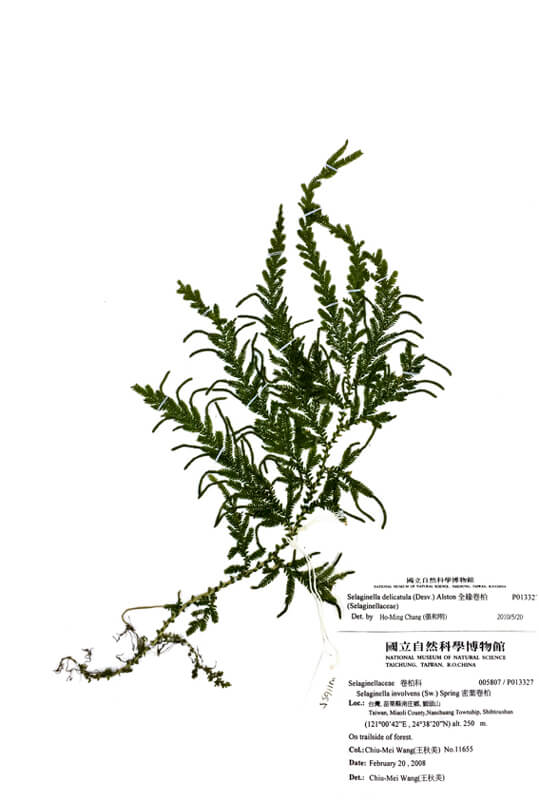 The focus of this online exhibition is 12 herbarium specimens of plants of the family Selaginellaceae from Taiwan. There are more than 800 species in this family worldwide, mainly distributed in tropical areas. Among them, some grow in hot dry areas, such as in deserts or on rocky cliffs. Some grow in humid and dark environments, such as on the forest floor or at cave entrances. Those in Taiwan have adapted to these two types of extreme environments, presenting rich species diversity.