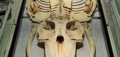 本種擁有典型喙鯨科動物所具有的兩顆巨大下顎齒。分布於印度-太平洋熱帶至溫帶水域,屬罕見的深海鯨類。主食是魷魚等頭足類。這隻5公尺長、授乳中的雌性朗氏喙鯨於2005年夏天擱淺在臺灣東北角,是全世界已知的11個標本之一,少數有此完整骨骼者。