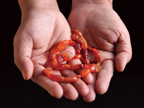 鹿寮遺址位於臺中縣沙鹿鎮,2000年到2001年,本館的考古隊在此進行發掘,利用紗窗網篩洗泥土,找到很多細小的遺物。其中有六十多粒瑪瑙珠或玉髓珠,包括梭形、球形、扁平、多角形等,是距今400年到1000年前,拍瀑拉族人的裝飾品。