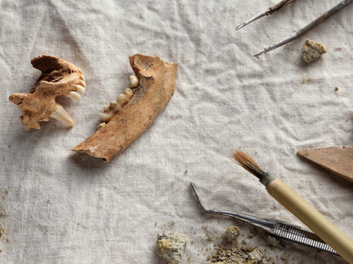 狗獾(Meles meles Linnaeus)屬於食肉目鼬科,多棲息於森林、山坡的灌木叢,以及湖泊、河、溪旁邊,挖洞而居。由鹿寮遺址發現的狗獾骨頭與牙齒,確認牠是臺灣的原生動物之一。但臺灣現在已經沒有狗獾的蹤跡,可能因為棲息地破壞而絕種。
