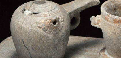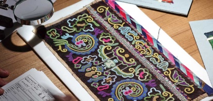 此件為清道光時期臺灣製磚造媽祖神像。由於當時臺灣社會物資匱乏,不少師傅採用泥塑窯燒與磚造方式生產神像,這類的神像在日治時期還可見到,光復後漸趨稀少,多以木刻為主。一般磚造媽祖很少做持奏版的朝天式造型,僅大型的地方寺廟才會供奉,因此推斷本件來自於大廟。本件採粉線技法,頭戴九龍通天雙鳳冠、著官服、持奏版、坐交椅。在技法上,磚造媽祖不分派別,僅有木刻神像才作漳、泉、福的區隔。
