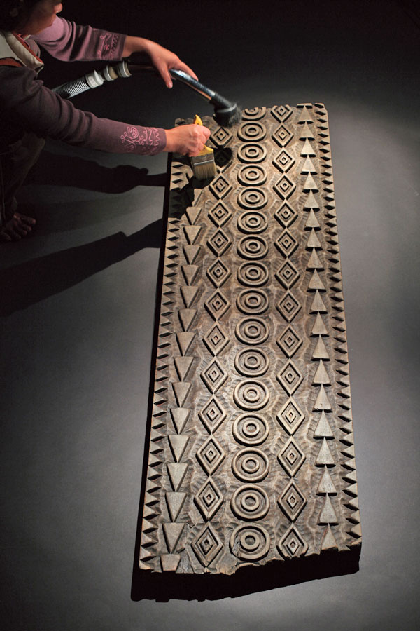 雙圓木雕原為北投巫師使用,解家分家時切成三塊,其他兩塊已不知去向。 最早雙圓圖騰是在苑裡蕭番婆墓碑發現,接著後壠南社解家祖先墓碑也有,通霄鎮幾個地點也發現相同的圖案。雙圓圖案的出現,可以肯定的是屬於道卡斯族的圖騰。 雙圓圖騰的內部有齒狀圖形,與某些原住民有些類似,例如內部三角連線圖形與排灣族類似,四角菱形又與泰雅族群非常相近。但是相同的圖案並沒有出現在其他原住民的器物中。該雙圓圖騰僅出現在和宗教祭儀有關的文物,因此推斷該木雕與宗教祭儀相關。