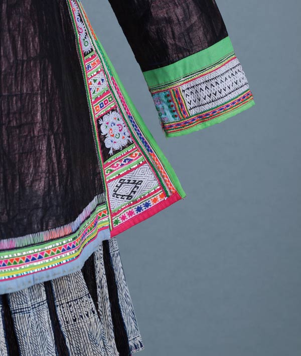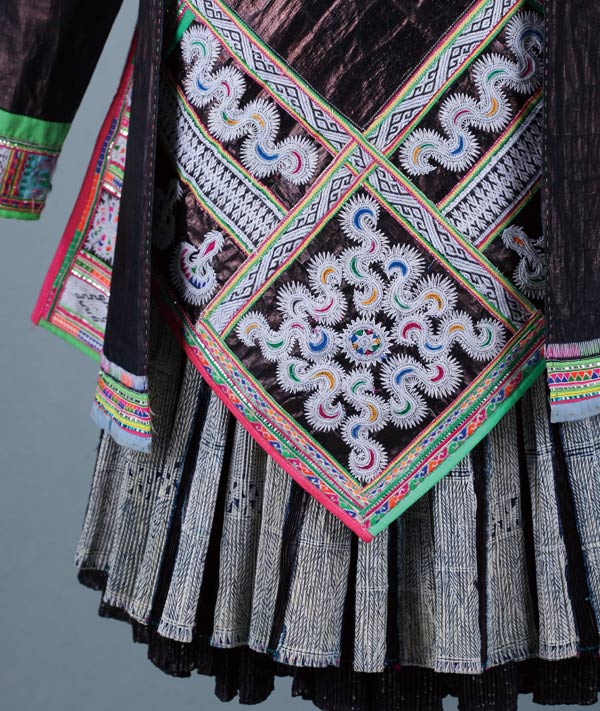 「沙」的苗語是草木繁盛之地的意思。貴州從江縣丙梅鎮巴沙村的苗族分住在月亮山路的五個寨子,茂密的森林為採集狩獵的資源。他們從侗族學習種稻技術,有大規模的梯田農作。據說,巴沙人是蚩尤第三子的後裔,被黃帝打敗後,跋山涉水至此隱居。苗族少女盤髮於頂插上木梳。上穿對襟無領無扣緊身小繡衣,袖口、衣擺飾以花帶,內著蠟染圍胸。下著蠟染百褶裙。所戴的的銀飾圈多達10圈,粗大沈重。